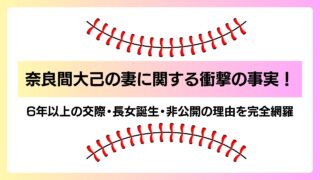 奈良間大己選手の妻は高校2年から交際を続けた一般女性。名前や顔写真は非公開ですが、「スープ系の料理が好き」という愛妻エピソードや長女誕生の裏話など、家族にまつわる温かいエピソードを詳しくご紹介します。