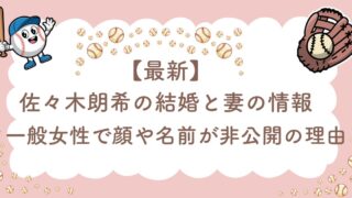 佐々木朗希の結婚相手は誰?妻は一般女性で詳細は非公開です。本記事では結婚の背景や理由、馴れ初めの可能性、世間の反応までわかりやすく解説します。気になる疑問をまとめてチェックできます。